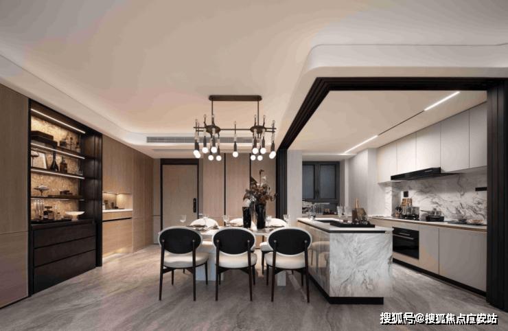 半开放厨房:厨房岛台设计,随心变身中餐厨区、mini西厨区、收纳空间、隔断空间和交流平台,充分满足掌勺人对厨房的一切空间想象。