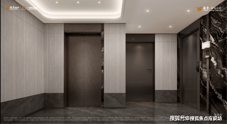 类一梯一户:私享入户,增加归家仪式感和收纳空间,对标五星级酒店大堂奢华质感,世界臻稀石材-泰晤士奢石打造尊崇入户私梯厅,让生活私密有度,出行从容自在。