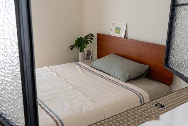 卧室以奶白色为基底,搭配原木色的床架和米白色床品,在一抹绿植的点缀下,就像一杯女孩子最爱喝的温热燕麦奶茶,甜蜜极了。